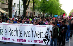 Der EuroMayday wurde 2001 in Südeuropa als Alternative zu den drögen Gewerkschaftsdemos ins Leben gerufen. Dieses Jahr findet er zum ersten Mal in Berlin statt. Unter anderen ruft die Antifaschistische Linke Berlin (ALB) zur Teilnahme auf. Die ALB erhofft sich von dieser neuen Form eine Re-Politisierung der 1. Mai-Demos.